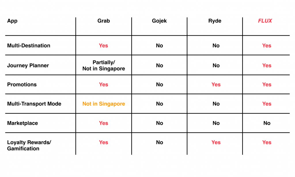 After going through the pain points, we start to compare each feasible opportunity with our competitors’. (based on Singapore’s market)